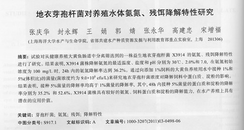 地衣芽孢桿菌對養(yǎng)殖水體氨氮、殘餌降解特性研究