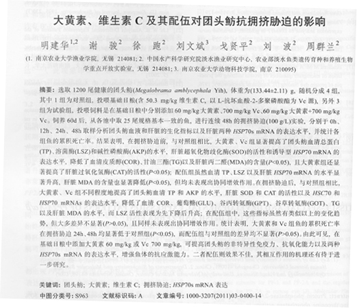 大黃素、維生素C及其配伍對(duì)團(tuán)頭魴抗擁擠脅迫的影響