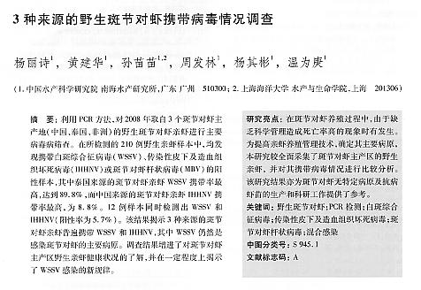 3種來(lái)源的野生斑節(jié)對(duì)蝦攜帶病毒情況調(diào)查
