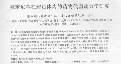 氟苯尼考在鱘魚體內的藥物代謝動力學研究