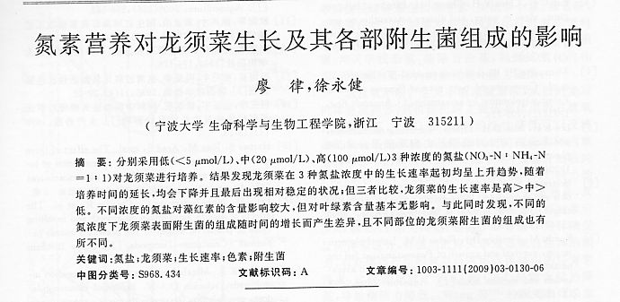 氮素營養(yǎng)對龍須菜生長及其各部附生菌組成的影響