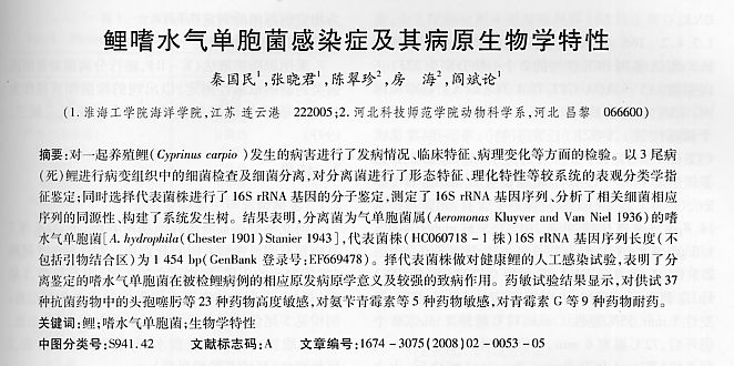 鯉嗜水氣單胞菌感染癥及其原生物學(xué)特性