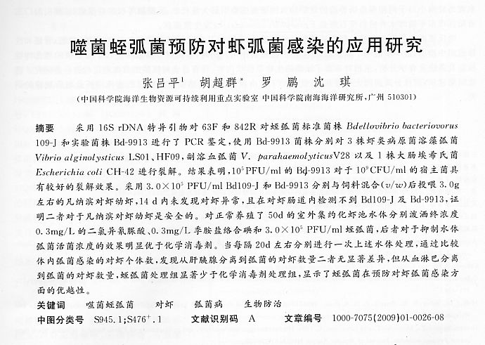 噬菌蛭弧菌預防對蝦弧菌感染的應用研究