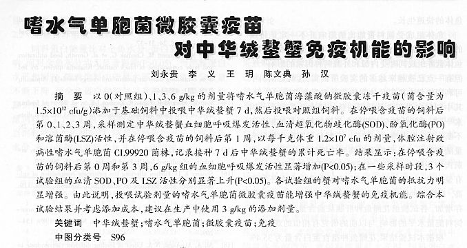 嗜水氣單胞菌微膠囊疫苗對中華絨螯蟹免疫機能的影響