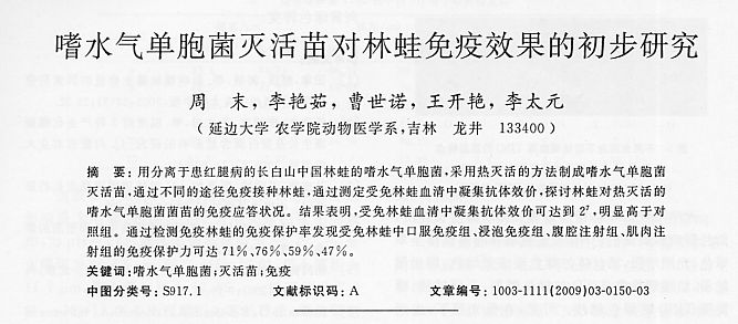 嗜水氣單胞菌滅活苗對(duì)林蛙免疫效果的初步研究