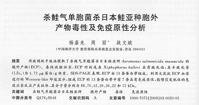 殺鮭氣單胞菌殺日本鮭亞種胞外產(chǎn)物毒性及免疫特性比較